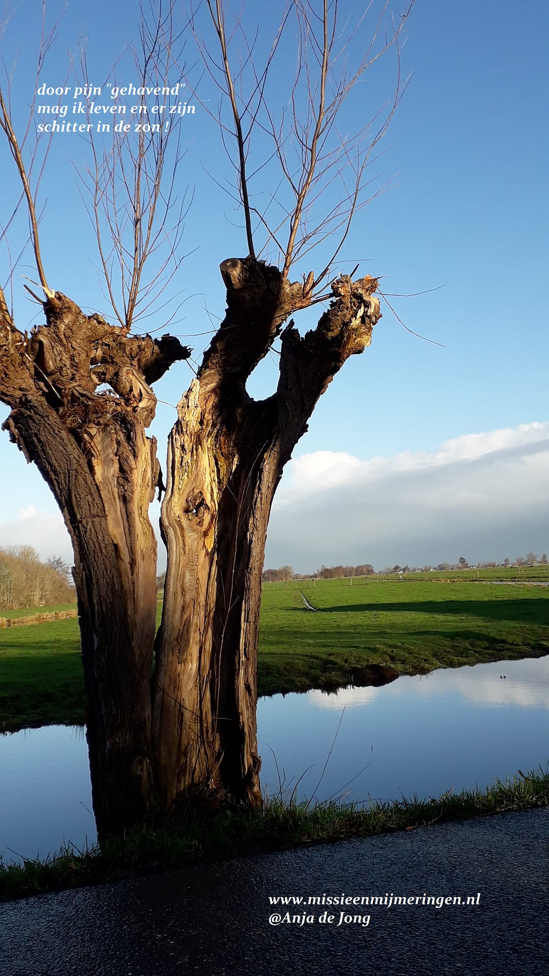 Tot slot wil Anja jou meegeven ‘het leven is niet altijd rozengeur en maneschijn. Hobbels en (val-) kuilen maken onze levensweg soms lastig. Schroom niet om dat te herkennen én erkennen, allereerst aan jezelf maar ook aan anderen. Henri Nouwen schrijft hierover “omarm je pijn.” Ik vind dat nét even iets teveel van het goede (omdat ik omarmen zie als ‘houden van’ en ‘dit vind ik fijn cq ik vind je lief’), maar ik begrijp wel wat hij bedoelt te zeggen: geef toe dat het niet altijd meevalt, pijn mag er zijn! Moeite en verdriet ook en als het allemaal tegelijk komt in je leven: huil, huil en huil nog eens EN schuil bij de Heere om dan na een moment van erkennen en toegeven dat het niet meevalt, weer op te krabbelen en samen met de Heere en alle mensen die Hij je geeft, je weg vervolgen. Hoopvol richting de Toekomst.’